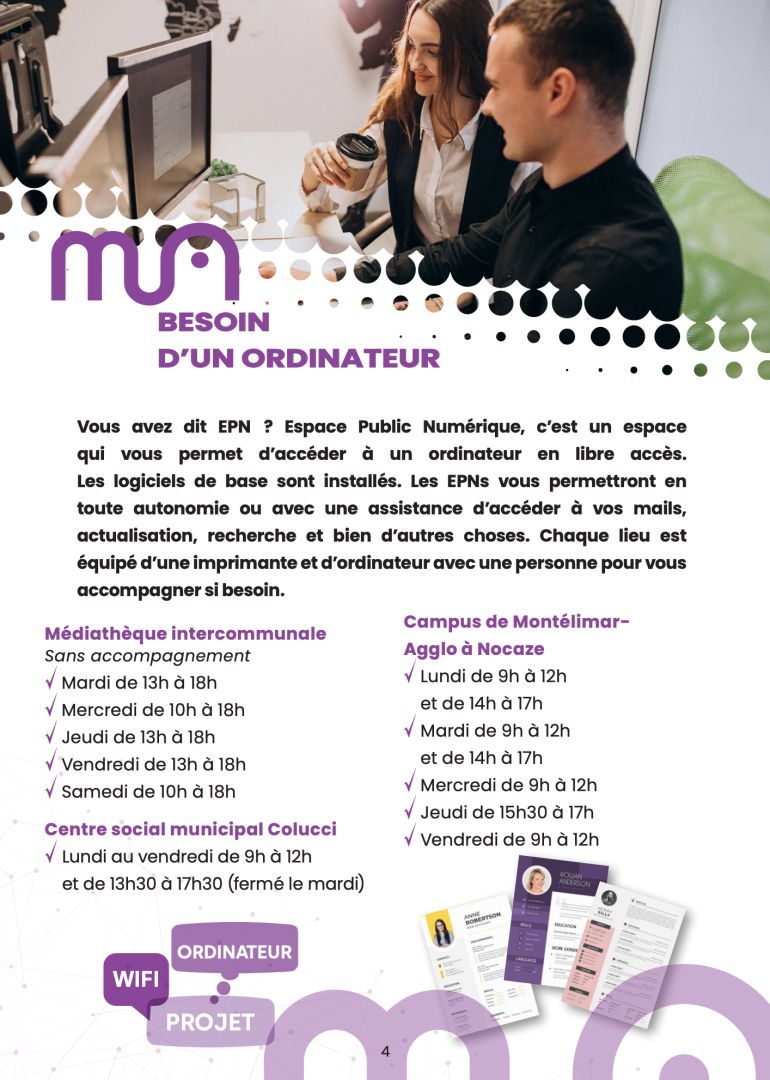 L’équipe du numérique pour tous est là pour vous aider à prendre confiance en vous sur le numérique, répondre à vos questions et vous guider lors d’ateliers collectifs ou individuels. Tous les rendez-vous et ateliers sont gratuits et accessibles à tous.
