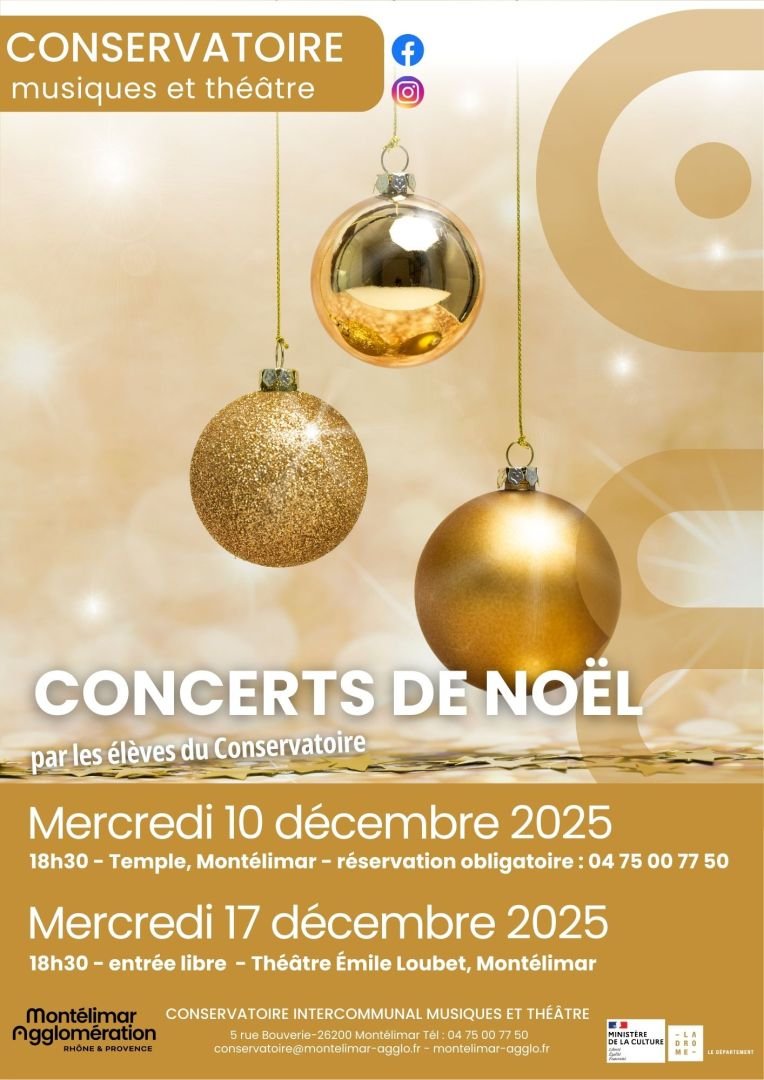 Venez à la rencontre des élèves du conservatoire les mercredis 10 et 17 décembre, 18h30, pour le concert de Noel.