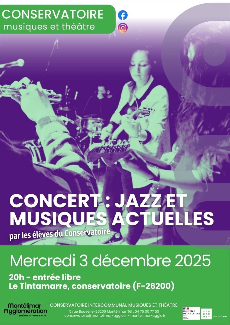 Les élèves du conservatoire vous invitent à une soirée musiques actuelles le mercredi 3 décembre, 20h, au Tintamarre.