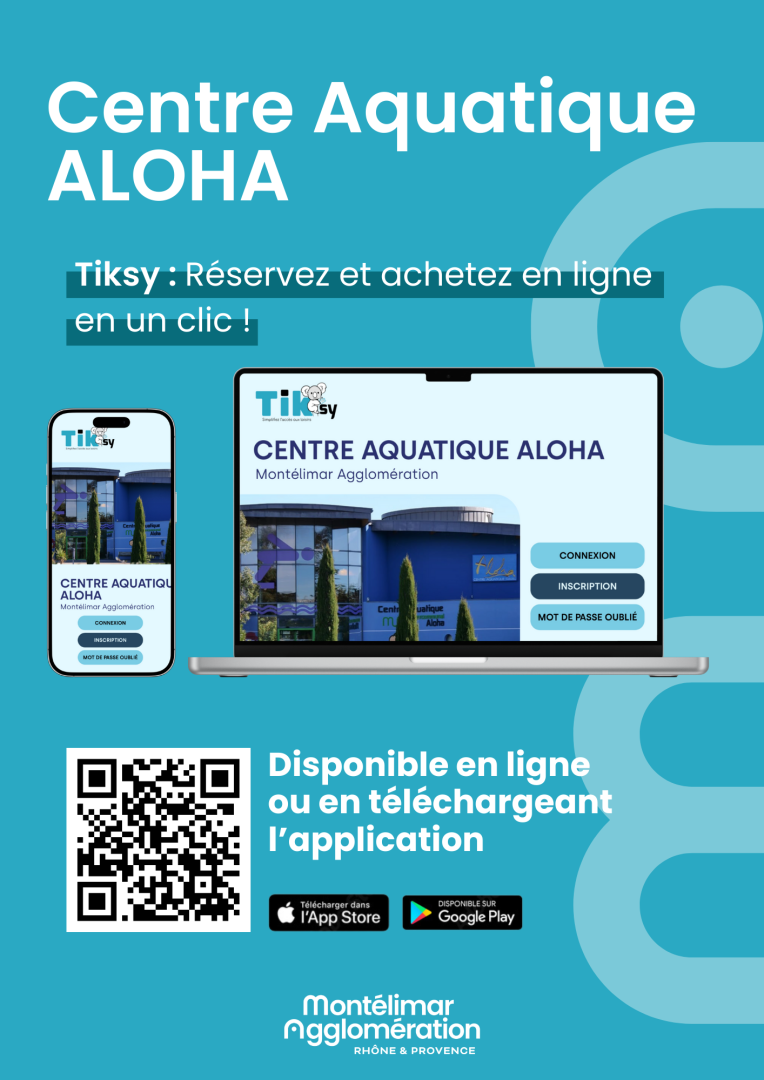 AVANT TOUT ACCÈS AU CENTRE AQUATIQUE MERCI DE TÉLÉCHARGER L'APPLICATION TIKSY SUR L'APP STORE OU GOOGLE PLAY.